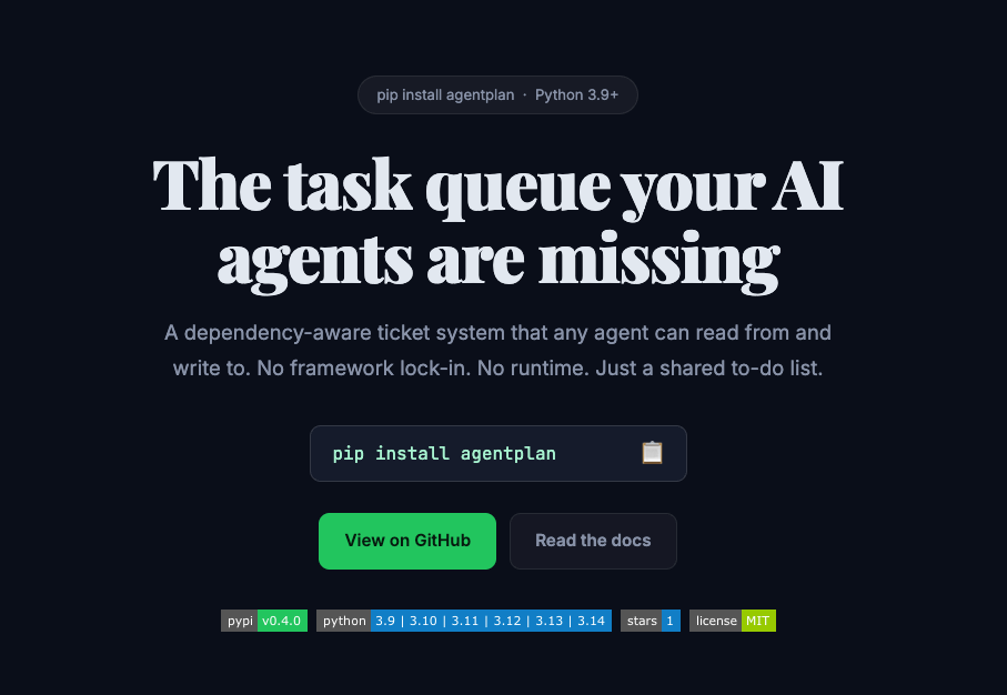 AgentPlan. Shared to-do list for agents. Dependencies, priorities, atomic claims so two agents don’t grab the same ticket. Pure Python, zero deps. That overnight run? AgentPlan keeping them in line. Without it they’re just running around like headless chickens.